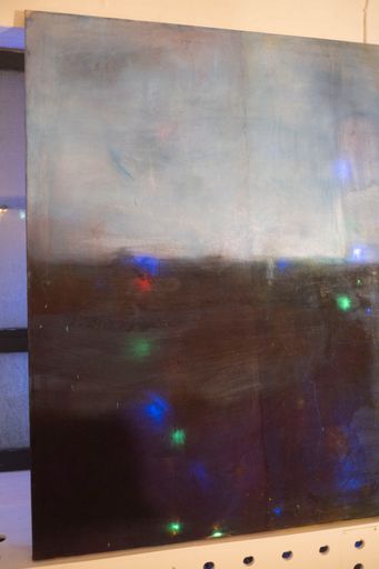 frankincense varnish on canvas, LED-lights.